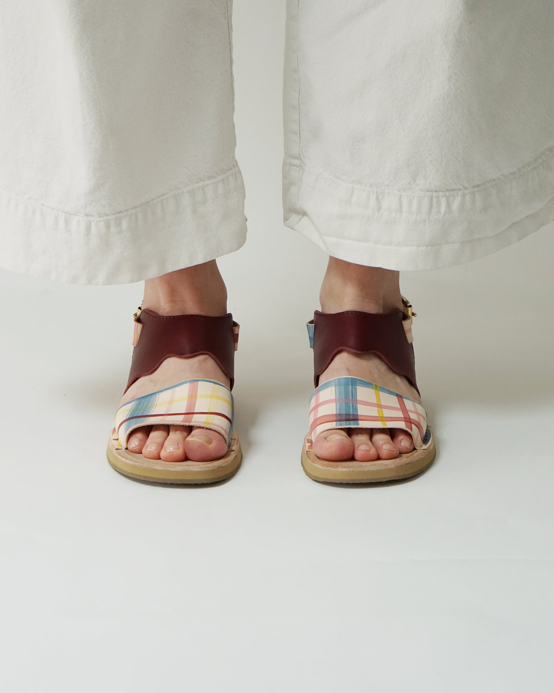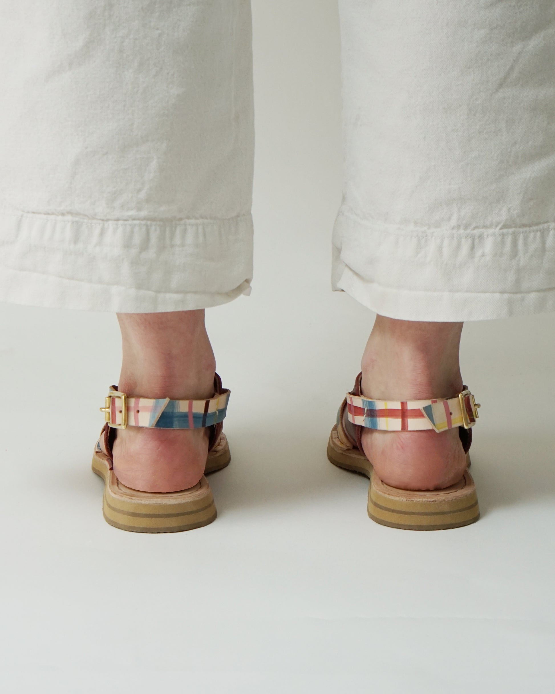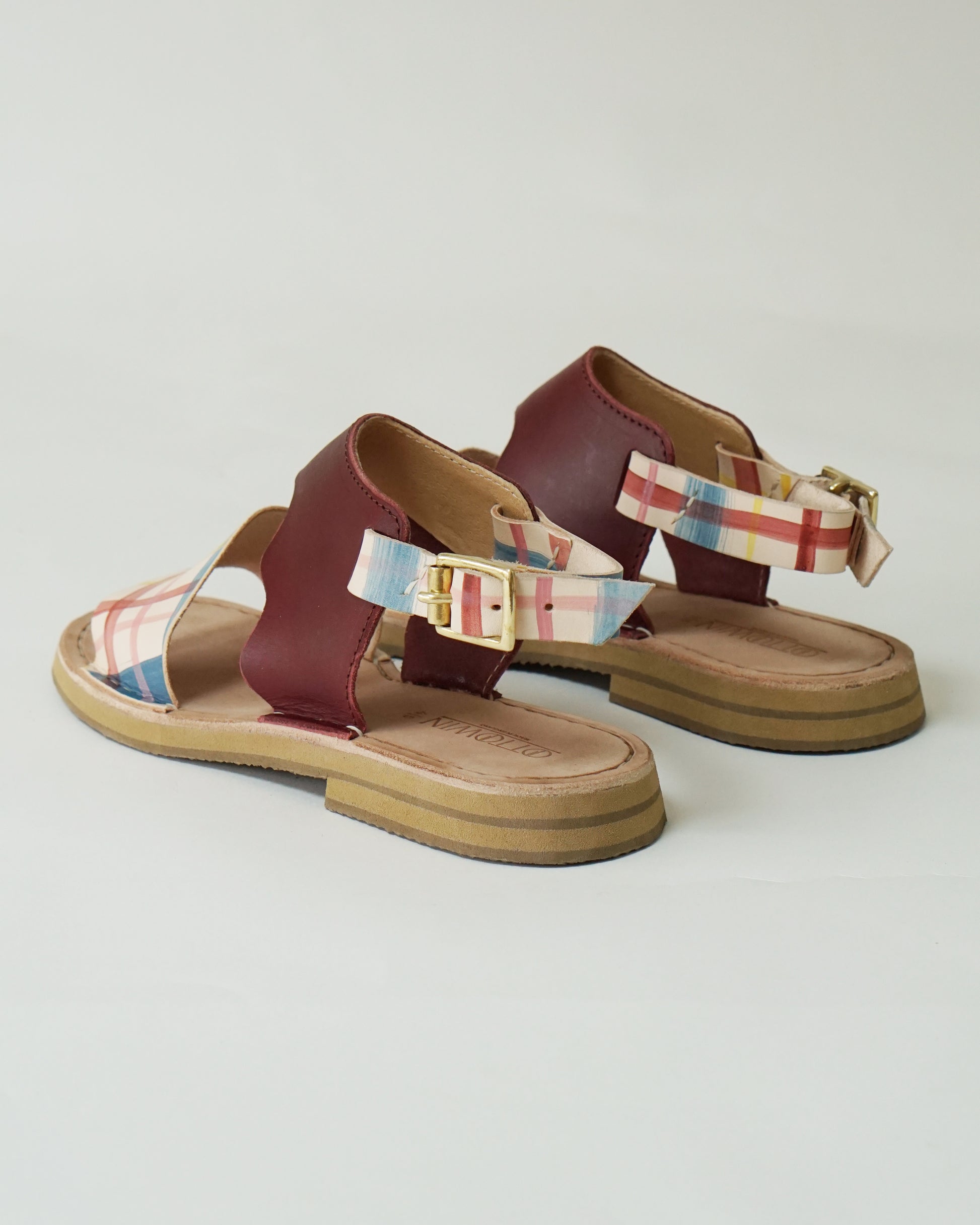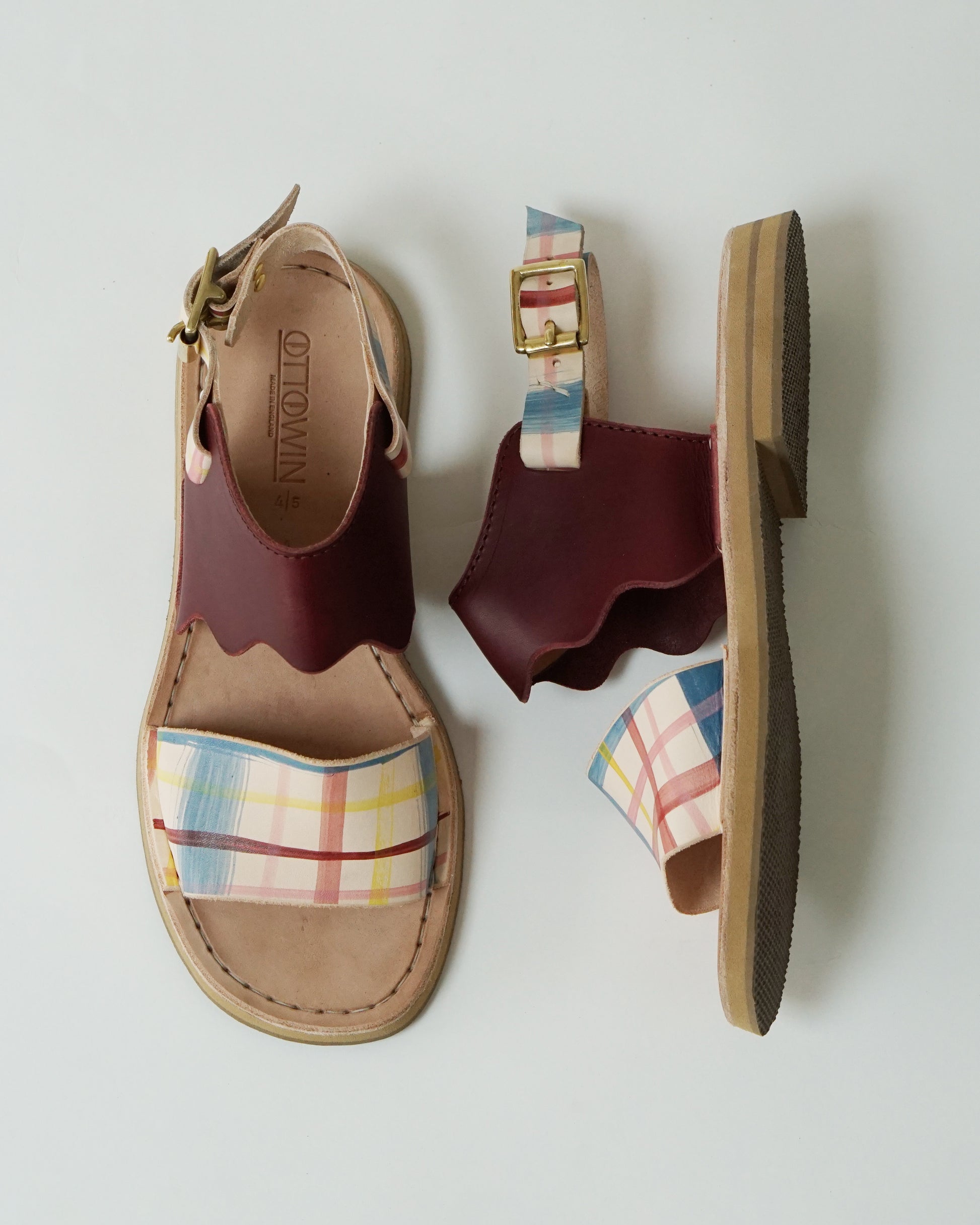 Ripple sandal a sculpted leather silhouette with hand painted plaid panel